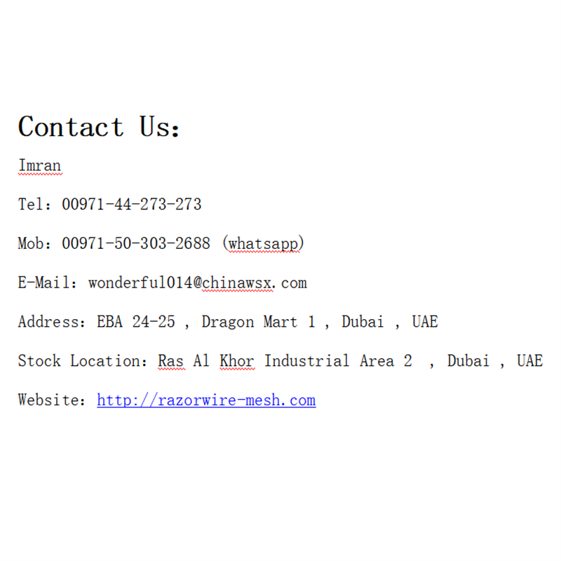 Stock Location:Ras Al Khor Industrial Area 2, Dubai , UAE